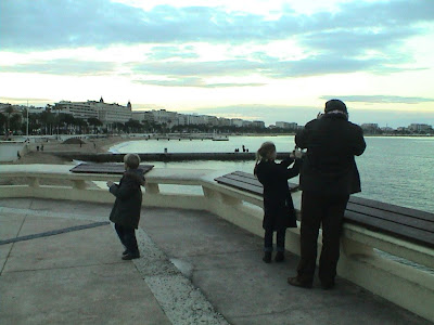 O passeio dos ingleses iluminado a azul,vermeho e branco, as cadeiras viradas ao mar, do outro lado o Carlton Hotel,....a iluminação de um do outro lado da imensa avenida, as imensas palmeiras, os inúmeros hotéis de luxo, uma miríade de côr e luz, recebe-nos á entrada de Cannes, onde o espírito de Natal parece mais forte.